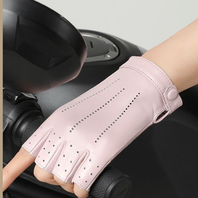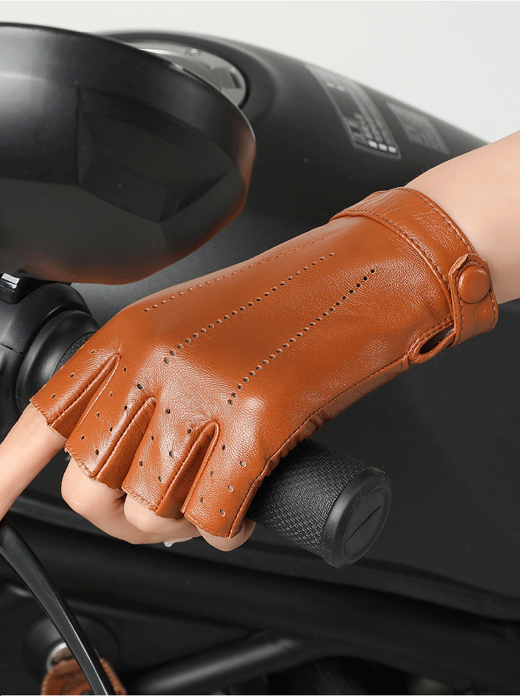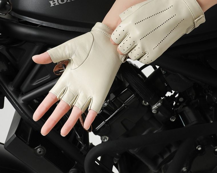 上質な革を使用したバイク グローブです。指先が開いたハーフフィンガータイプで操作性と通気性を両立しました。