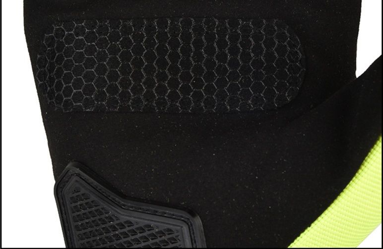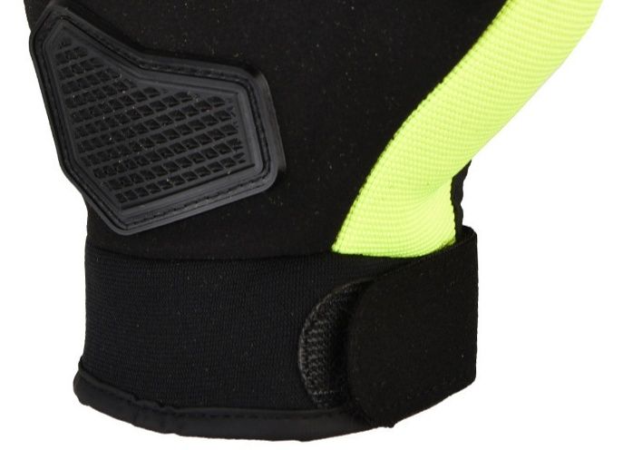 手の甲には硬質樹脂製のナックルガードを配置し、転倒時の衝撃から手指をしっかり保護します。