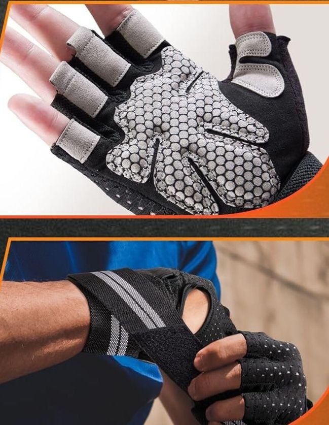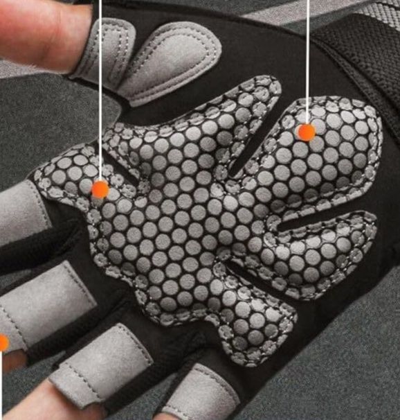 手のひら全体に配置された滑り止めパッドが優れたグリップ力を発揮し、厚手のクッション材が衝撃をしっかり吸収します。