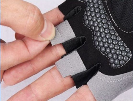 手のひらに滑り止めパッドを配置したバイク グローブの指なしグローブです。