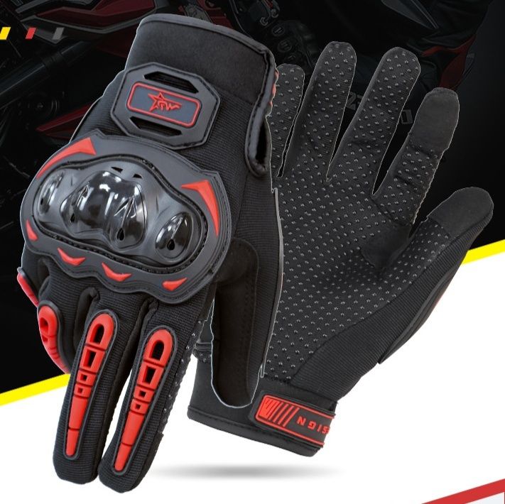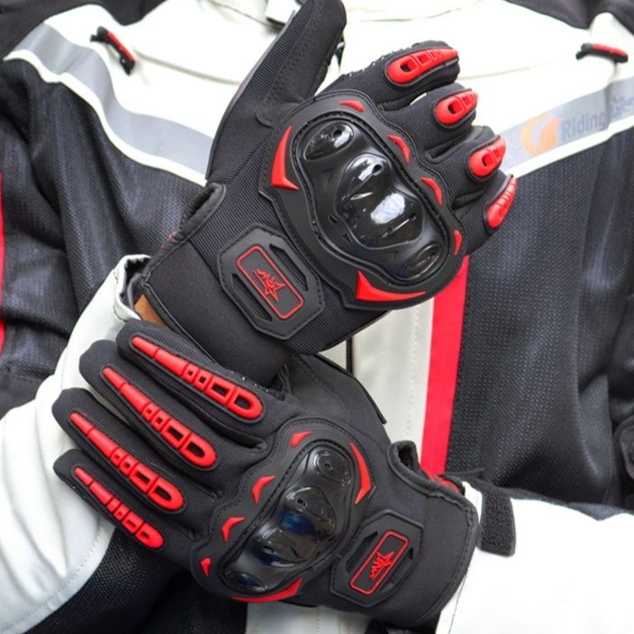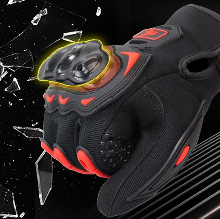 拳部分に硬質プロテクターを配置し、転倒時の衝撃から手をしっかり守るバイク グローブです。