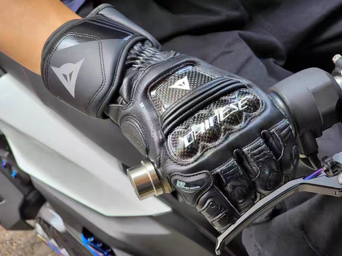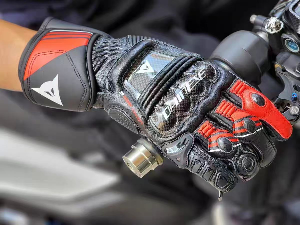 拳部分にカーボン調のプロテクターを配置し、転倒時の衝撃から手をしっかりと保護します。